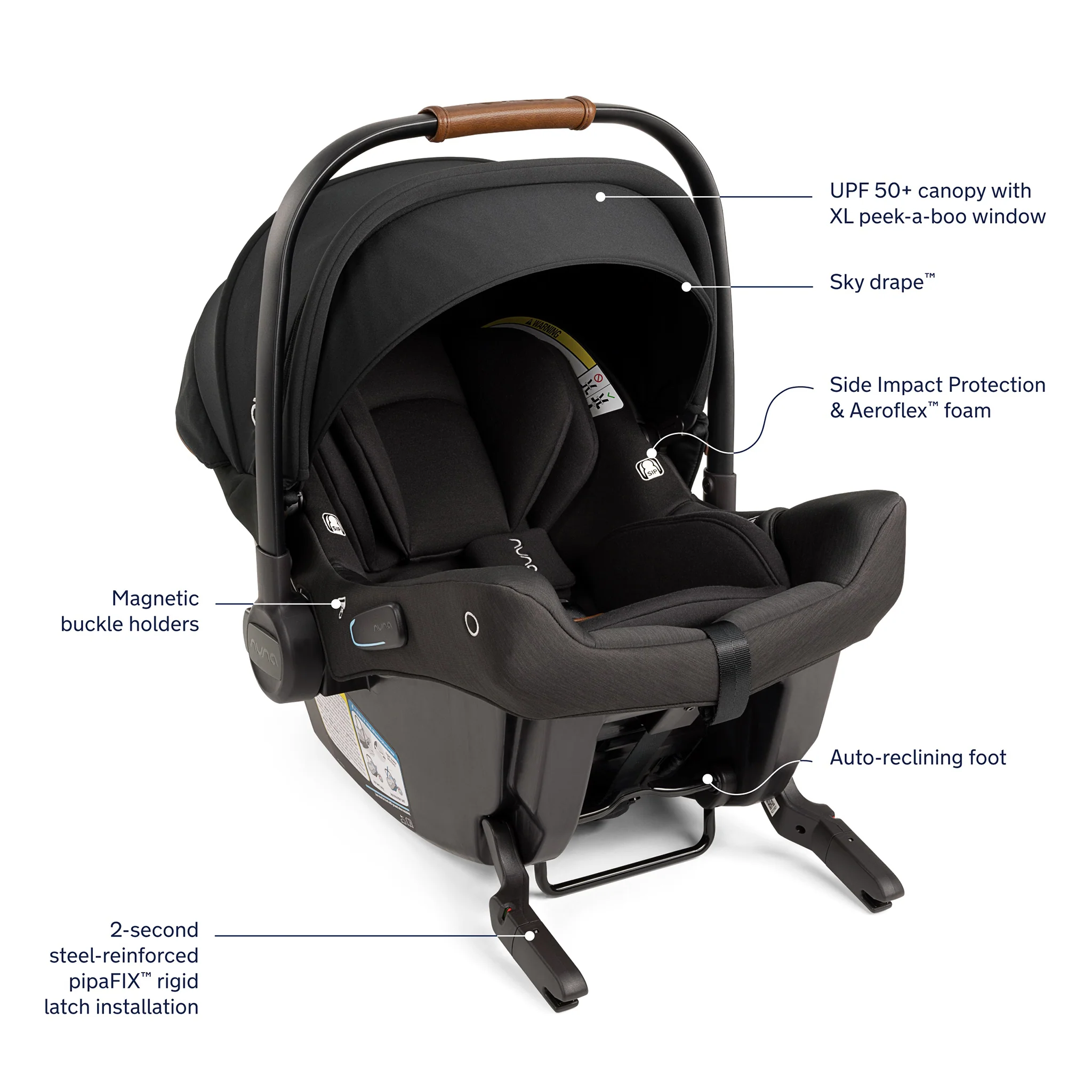 - Travel with ease with pipaFIX™ or vehicle seat belt—no base needed